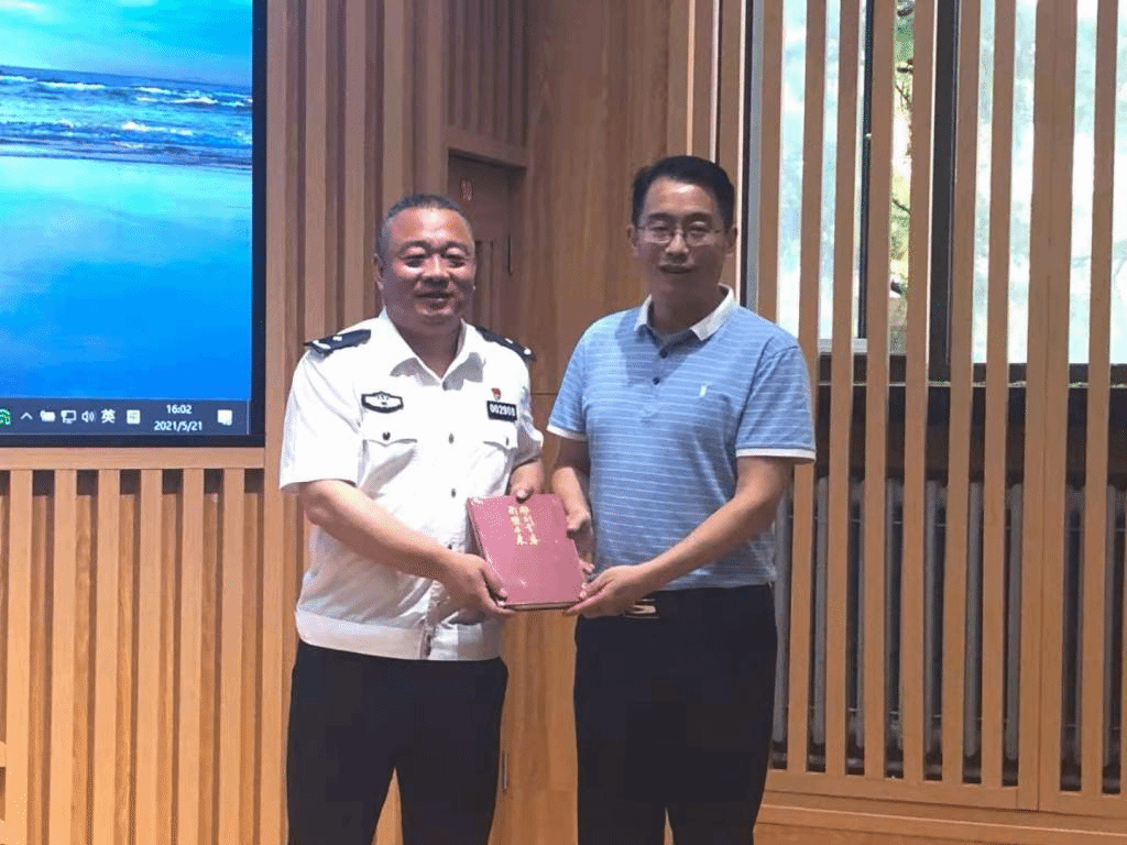 报告会最后,丁浩代表学校向毕波赠送了2019年北外学子参加国庆七十周年游行的训练周记合集《雕刻青春 形塑未来》。