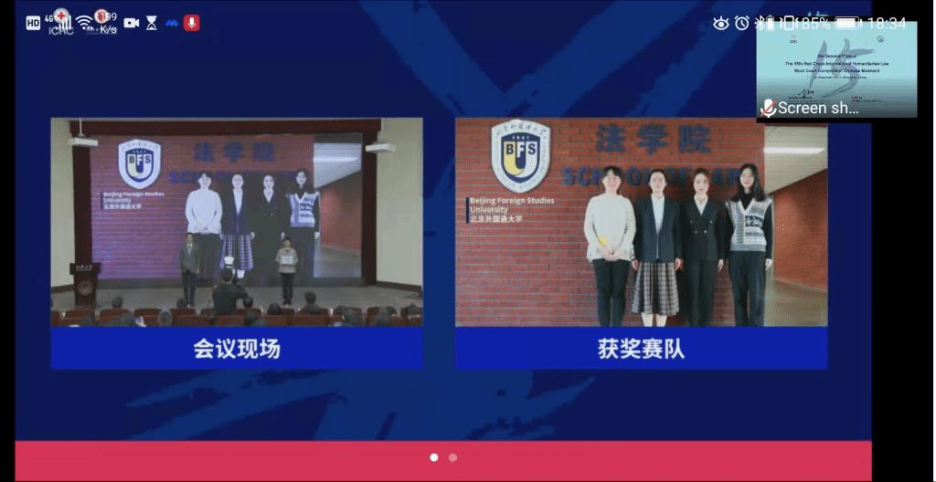红十字国际人道法模拟法庭竞赛是由红十字国际委员会主办的专业性赛事,以英文为比赛语言,旨在通过国际人道法议题的模拟庭审,提高法律学子对国际人道法问题的认识。今年beat365代表队由2019级本科生李景星、张嘉雯、李馨仪、袁楚豫组成。今年比赛是国际人道法模拟法庭比赛有史以来参赛队伍数量最多的一届比赛,共有来自57所高校beat365官方网站的队伍参加。代表队从8月份开始备赛,在10月7日各赛队提交书状后,主办方先予预选,得分前32名的队伍获得参加口头环节比赛的资格。因疫情原因,比赛从11月26日从线上推迟到12月11日线下比赛。口辩环节,张嘉雯和李景星同学表现出色,最终beat365代表队获得二等奖。