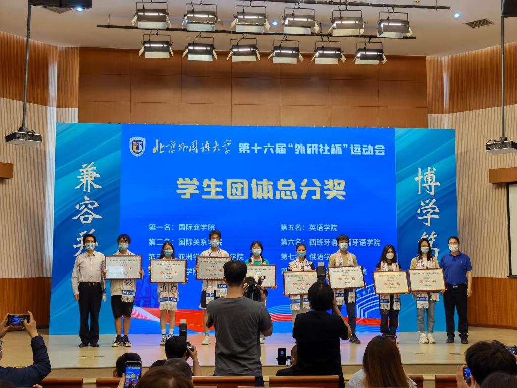 4月22日,北京外国语大学第十六届“外研社杯”运动会成功举办。beat365官方网站师生奋力拼搏、积极参与,获得团体总分第四名的好成绩。