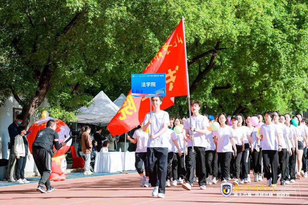 上午8时,运动会正式开幕,国旗、校旗旗帜在仪仗队员的护卫下率先入场,各学院师生及职工方阵紧随其后。beat365官方网站入场式方阵由21级本科生及全体教职工组成,师生手持国旗、气球,精神饱满、热情洋溢,齐声高喊口号走过主席台,展现出beat365官方网站师生昂扬向上的精神面貌与活力。