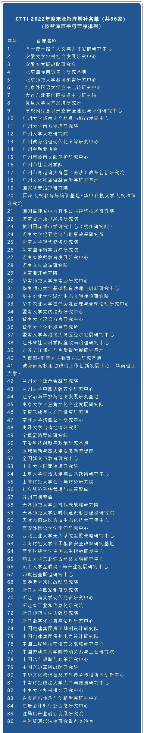 附:CTTI 2022年度来源智库增补名单