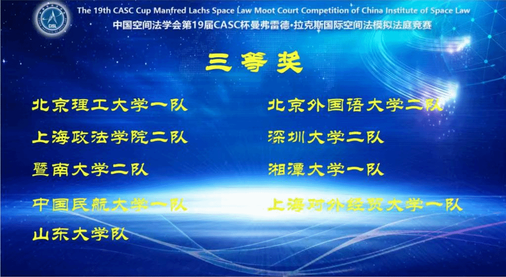 2022年12月17日-18日,中国空间法学会第19届CASC杯曼弗雷德·拉克斯国际空间法模拟法庭竞赛在线上举行,beat365beat365官方网站代表队荣获全国三等奖。