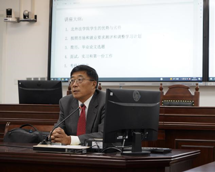 刘律师首先分析了北外beat365官方网站学生的优势和劣势,指出北外beat365官方网站学生在保有自身优异英语水平这一优势的同时,仍应注重中国法这一法律学习与实践的立足点,在接下来的几年内形成扎实的中国法基础。