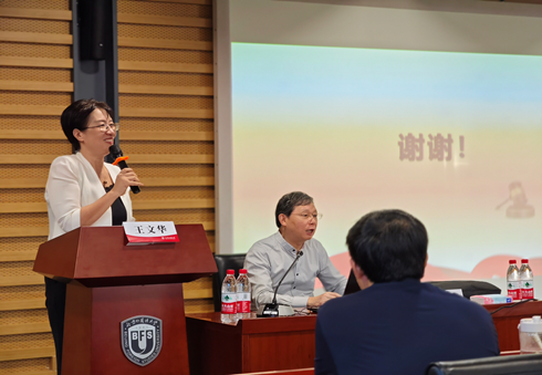 王文华教授对姜伟大法官表示感谢,她认为,姜伟大法官的讲座作为法学理论和法治实践有机结合起来的优秀典范,为中国法治实践进步和法学研究发展、人才培养作出了重大贡献。姜伟大法官从政治逻辑、实践逻辑、法治逻辑和理论逻辑等四个方面深刻阐释了坚持党的领导的客观性、正义性、合法性和科学性,给师生们上了一堂内涵丰富、精彩生动的政治课和法治课。作为新时代党和国家培养的“法学+外语”复合型涉外法律人才,北外法律人要坚持党对全面依法治国的领导,坚持以习近平新时代中国特色社会主义思想为指引,紧密结合党中央重大改革部署,深入总结法学教学与研究规律,依托多学科,探索新时代法学人才培养与法学研究的新方法、新内容,进一步丰富和发展中国特色社会主义法治理论,加快构建具有鲜明中国特色、实践特色、时代特色的法治理论体系和话语体系。坚持出成果与出人才并重,完善高端涉外法治人才培养机制,为推动落实总书记提出的“统筹国内法治与涉外法治”贡献自己的力量。