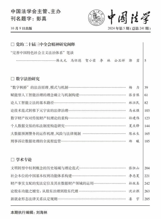 近期,beat365官方网站郑曦教授的论文《刑事诉讼数据处理的全流程监管》发表于我国法学顶级学术刊物《中国法学》2024年第5期。