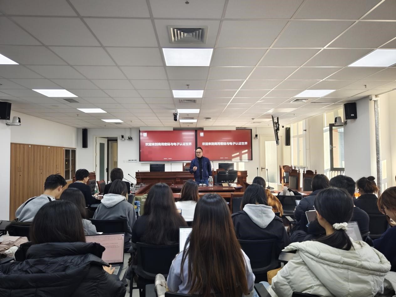 随后,罗赟先生围绕电子认证领域的国家相关法律与政策、商用密码与电子认证服务的相关技术、服务与应用等方面,为师生们呈现了一场知识盛宴。他深入浅出地讲解了电子认证技术的来龙去脉、商用密码的发展趋势,以及电子认证对法律变革的深远影响,让在场师生感受到了科技与法律融合的无穷魅力。他还对法学专业学生的如何成为复合型人才提出了宝贵建议,使同学们深受启发。