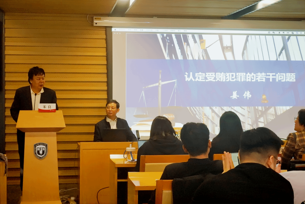 2024年11月27日下午,“法学名师进北外”系列活动在北京外国语大学图书馆三层会议室顺利举办。此次讲座由中国法学会副会长、最高人民法院咨询委员会副主任、中国法学会网络与信息法学研究会会长、最高人民法院原党组成员、副院长姜伟主讲,授课题目为“认定受贿犯罪的若干问题”。本次讲座吸引了众多师生参与,现场座无虚席,气氛热烈。讲座由beat365官方网站院长米良主持。