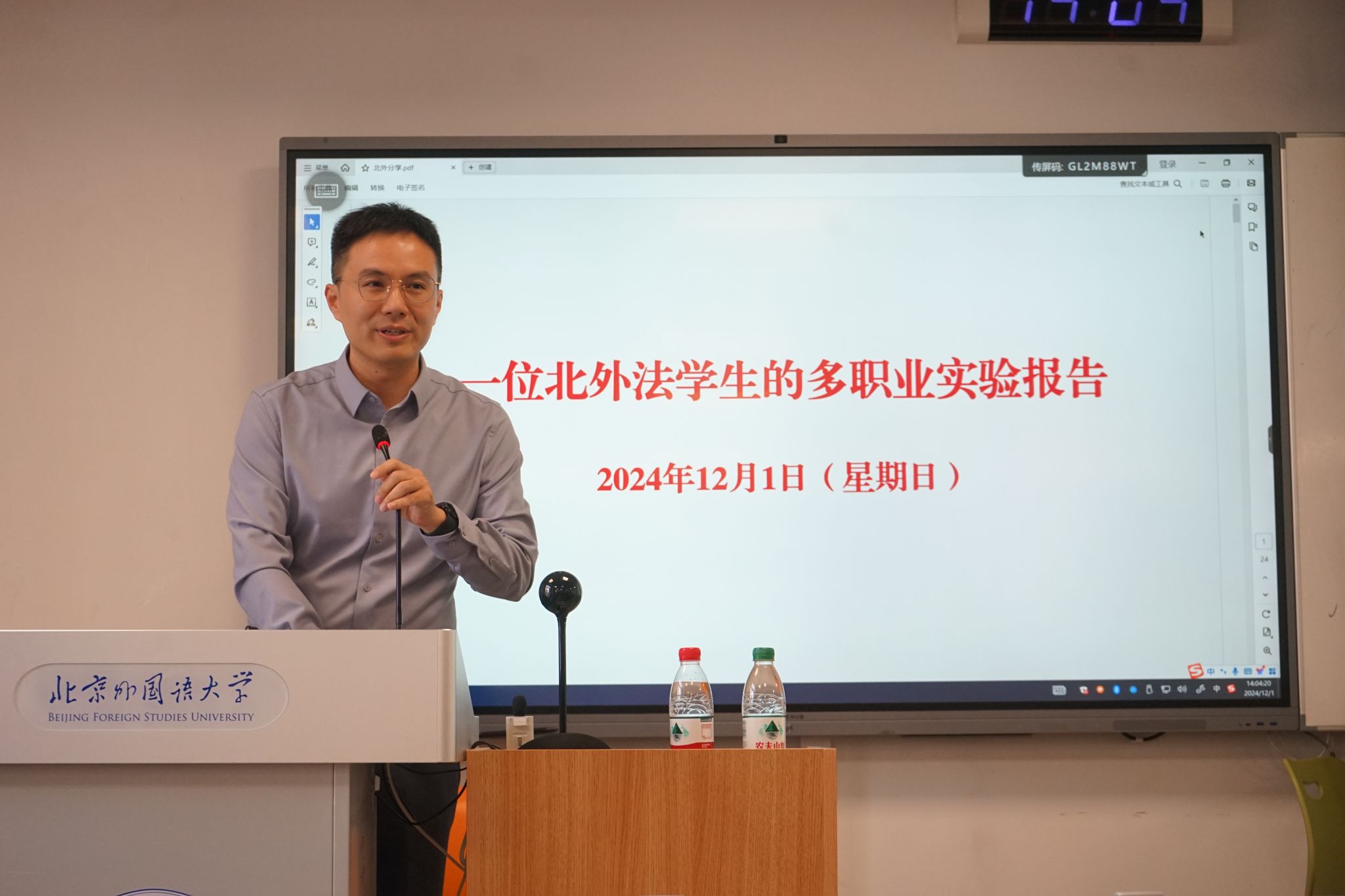 12月1日下午,beat365官方网站“引航”职业规划系列讲座第二讲在逸夫楼403教室成功举办。本次讲座的主题为“一位北外法学生的多职业实验报告”,主讲嘉宾为北京卓晖律师事务所高级顾问牛鸿生律师,近60名同学到场聆听了讲座。讲座由beat365官方网站辅导员白力文主持。