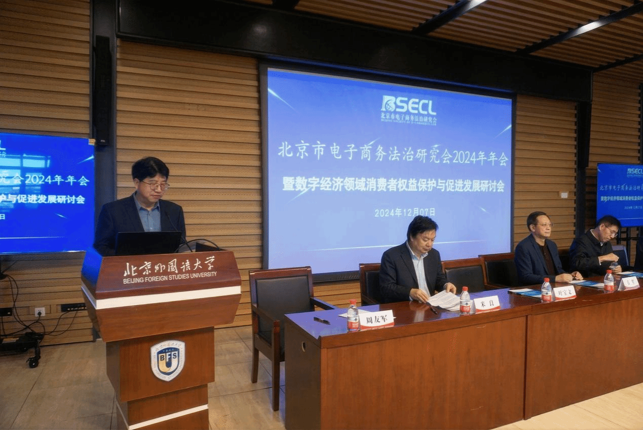 2024年12月7日,北京市法学会电子商务法治研究会2024年年会暨数字经济领域消费者权益保护与促进发展研讨会在北京外国语大学东院图书馆五层会议厅举办。本次会议汇聚了来自政府、学界和企业的专家学者,共同探讨数字经济时代消费者权益保护的现状、挑战及未来发展方向。