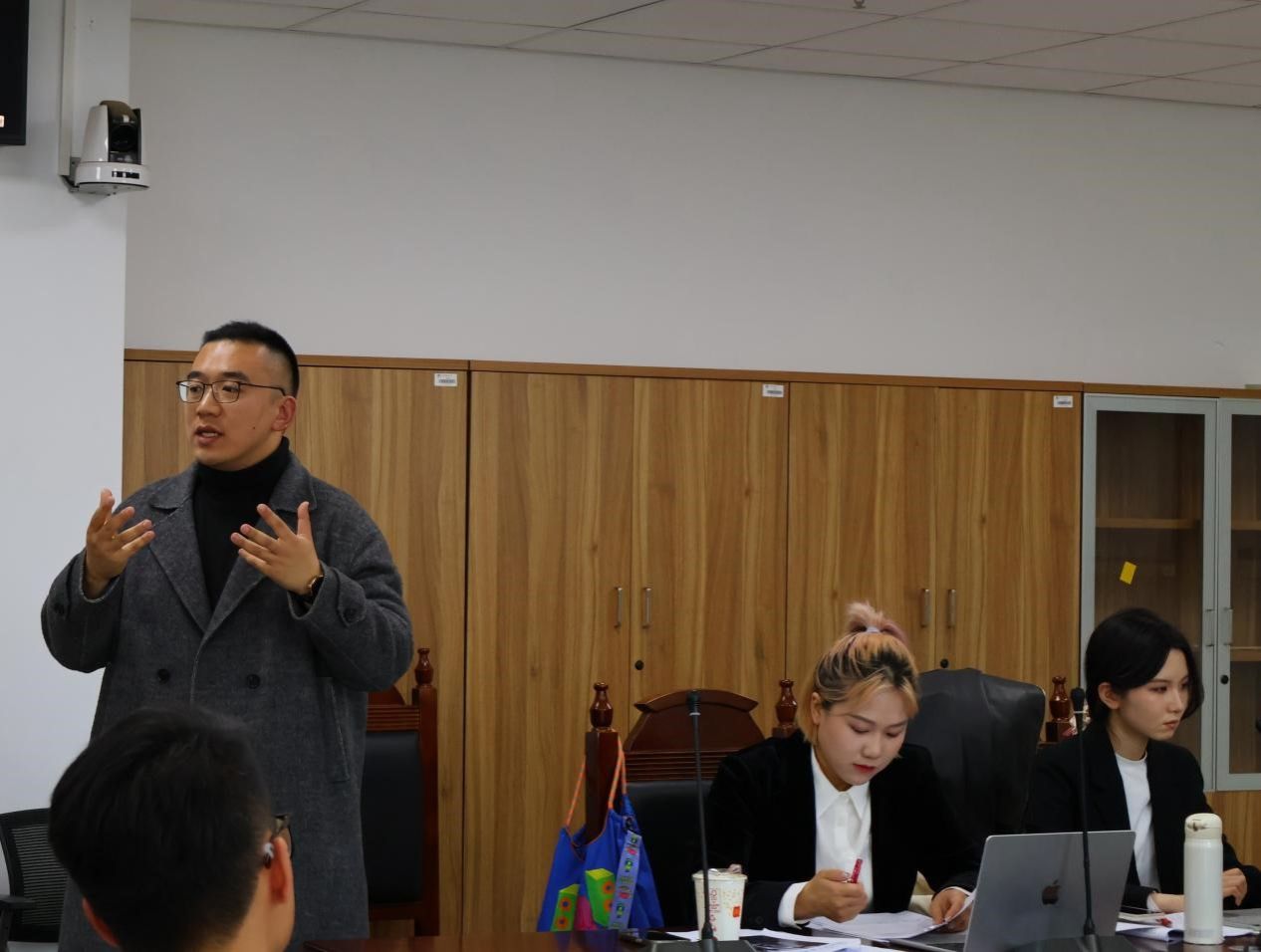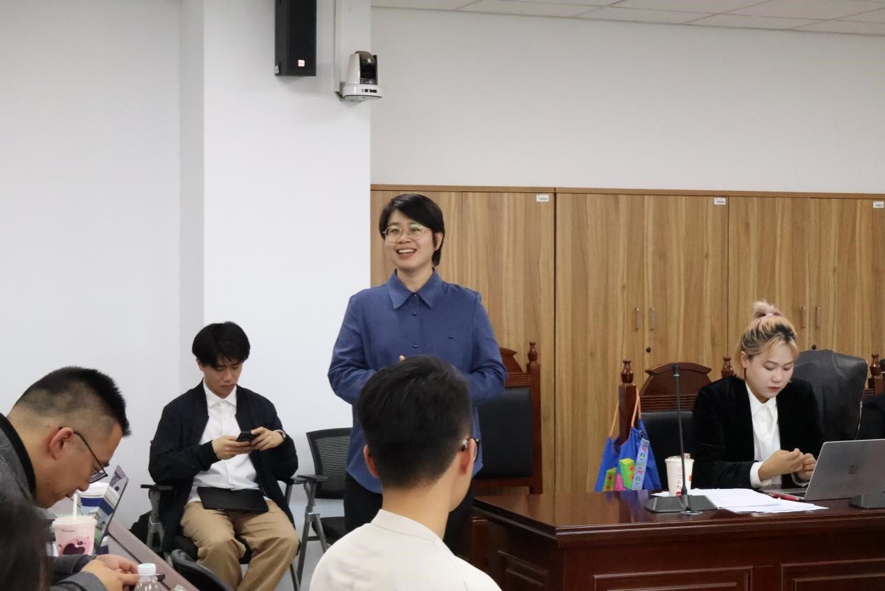 徐隽颖老师则回顾了模拟法庭课程的学习成果,肯定了学生们的进步。她表示,尽管同学们在正式场合使用法言法语的能力还有待进一步提升,但从初学时的稚嫩到如今的游刃有余,已显示出了扎实的法律功底和良好的职业素养。