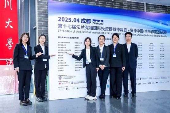 2025年4月7日至11日,第十七届法兰克福国际投资模拟仲裁庭(Frankfurt Investment Arbitration Moot Court)贸仲中国(内地)赛区预选赛比赛在四川大学举行。本届比赛吸引了清华大学、复旦大学、上海交通大学、中国政法大学、华东政法大学、北京大学国际beat365官方网站等37所全国知名高校赛队注册参加,由80余名中外法学专家担任仲裁员。beat365代表队在循环赛中总分排名第十四。其中,本科2022级张子玉同学和王纯瑶同学荣获循环赛“最佳辩手“称号(Best Oralist, General Rounds),张子玉同学荣获“团队贡献奖”(Outstanding Contribution Award)。
