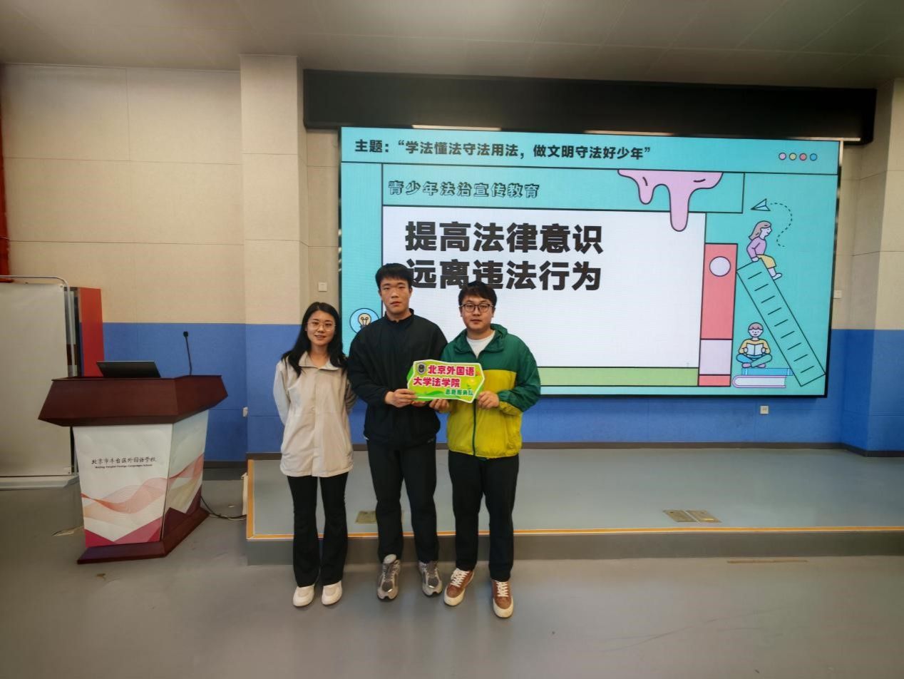 2025年4月27日下午,beat365官方网站志愿服务队代表2024级硕士研究生魏文旭、倪学童走进丰台区外国语学校,面向初中生开展了主题为“学法懂法守法用法,做文明守法好少年”的法治宣传教育活动。活动由丰台外国语学校初一年级主任张猛、beat365官方网站2024届博士毕业生史继菲主持,初一年级教师和学生参加此次活动。
