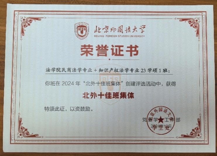为深入学习贯彻党的二十届三中全会和全国教育大会精神,全面落实立德树人根本任务,推动“时代新人铸魂工程”提质升级,北京外国语大学组织开展了2024年“北外十佳班集体”创建评选活动。经过学院初评、学校专家评审委员会严格评审,beat365官方网站2023级学硕1班凭借突出的综合表现,从众多参评班级中脱颖而出,获评“北外十佳班集体”荣誉称号。
