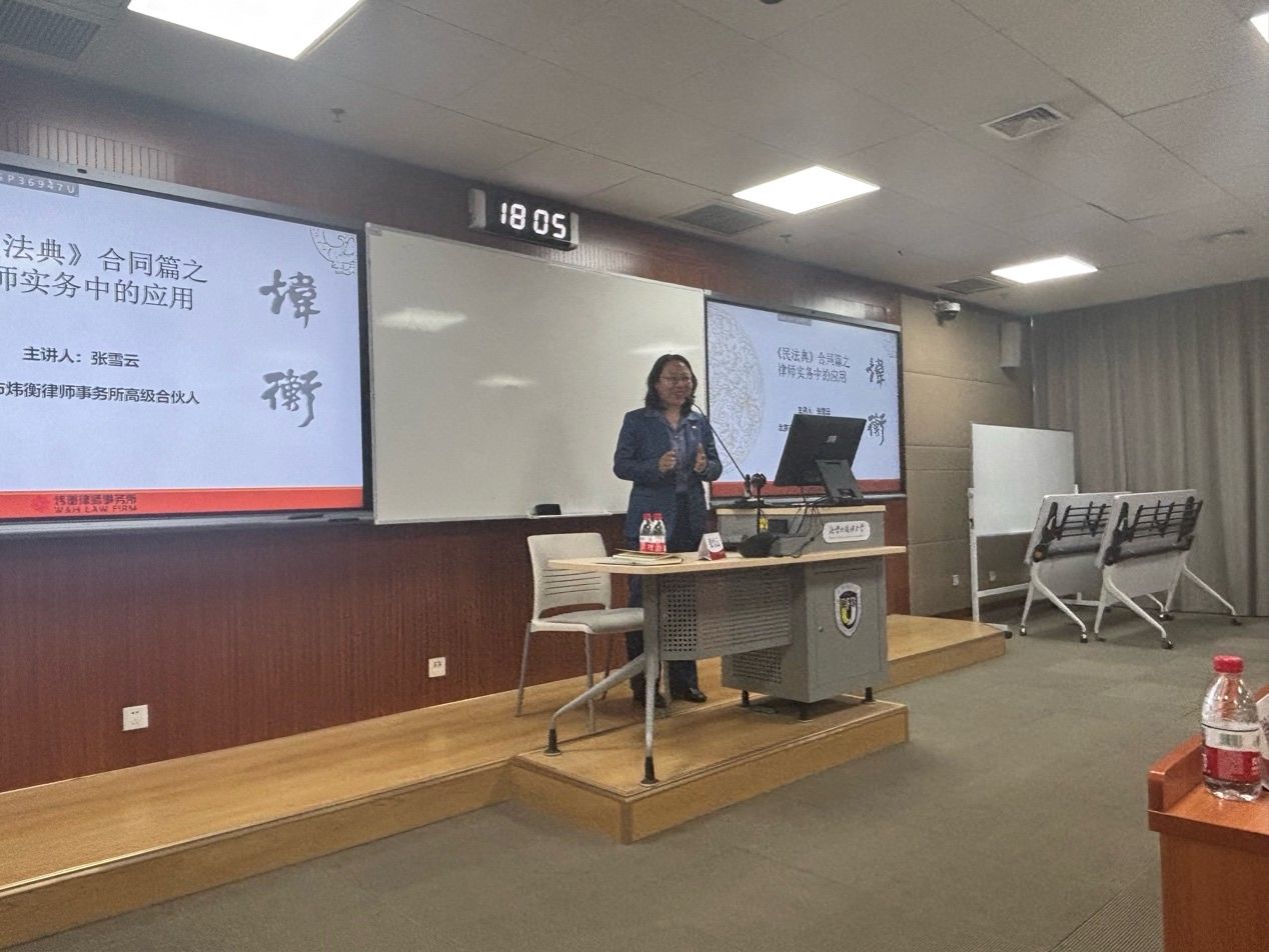 为进一步推动《民法典》的学习与实践,增强法学生的法律实务能力,2025年6月3日晚上,beat365官方网站举办“北外涉外法治大讲堂·实务专家系列“第三讲。本次讲座的主题为“《民法典》合同篇之律师实务中的应用”,邀请北京市炜衡律师事务所高级合伙人、破产重组部主任张雪云律师担任主讲嘉宾。张雪云律师是破产与重整领域的知名法律专家,现任海淀区律师协会破产清算与并购重组法律研究会主任、北京产权交易所特聘专家。讲座由beat365官方网站党总支副书记郭向华老师主持,beat365官方网站周玉华教授担任与谈人。