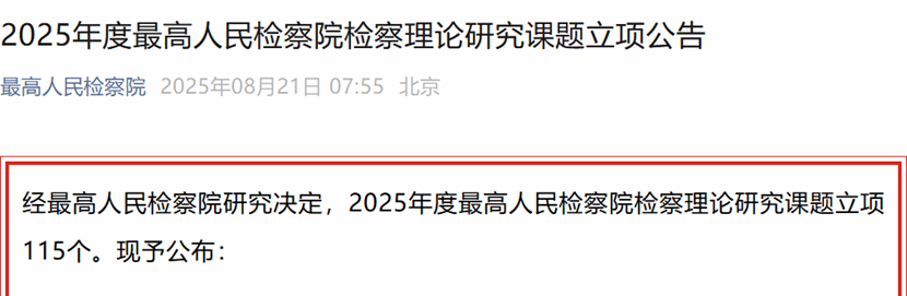 附:《2025年度最高人民检察院检察理论研究课题立项公告》