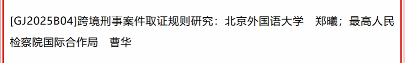 郑曦教授主持的课题《跨境刑事案件取证规则研究》获批一般课题。随着跨境犯罪日益复杂多样,取证规则成为跨境刑事案件办理的关键环节。该课题将深入研究跨境刑事案件中的取证难题,探索建立更加科学、合理、有效的取证规则体系,为提升跨境犯罪打击效能筑牢根基。