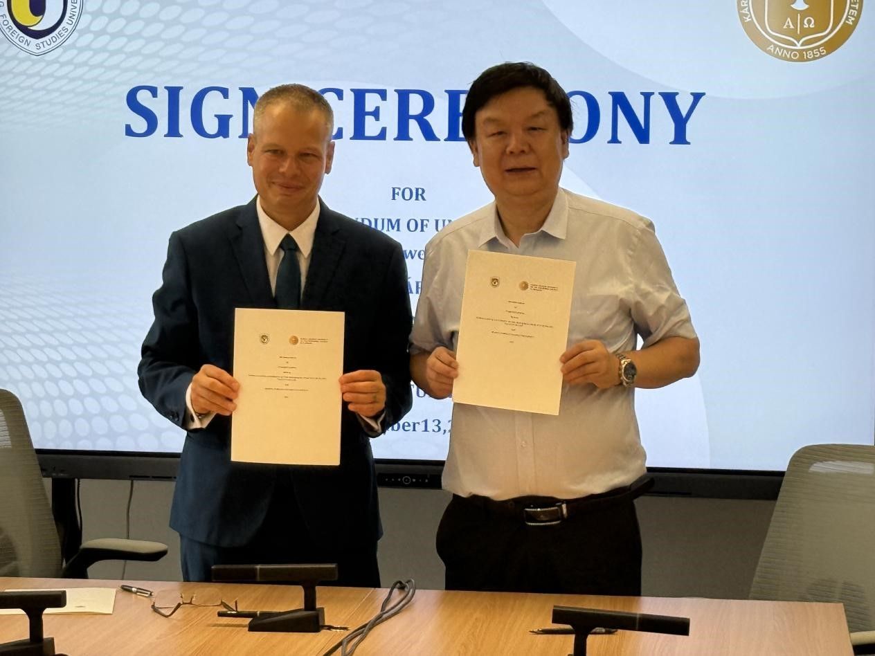 9月13日,beat365官方网站与卡洛里加斯帕新教大学beat365官方网站谅解备忘录签约仪式在北京外国语大学举行。beat365官方网站院长米良教授和卡洛里加斯帕新教大学beat365官方网站副院长Adam Booc教授代表双方学院在谅解备忘录上签字。