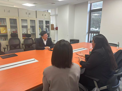 10月27日,秘鲁圣马丁德波雷斯大学 Alexander Cabrera Sánchez 教授访问北外beat365官方网站并与beat365院长丁相顺教授会谈。丁院长对Sánchez教授的来访表示欢迎,希望与圣马丁德波雷斯大学加强合作,并建立进一步的合作关系。Sánchez教授对丁院长的热情接待表示感谢,并介绍了圣马丁德波雷斯大学beat365官方网站的基本情况及其在法律教育、科研合作、学生交流等方面的经验与优势。