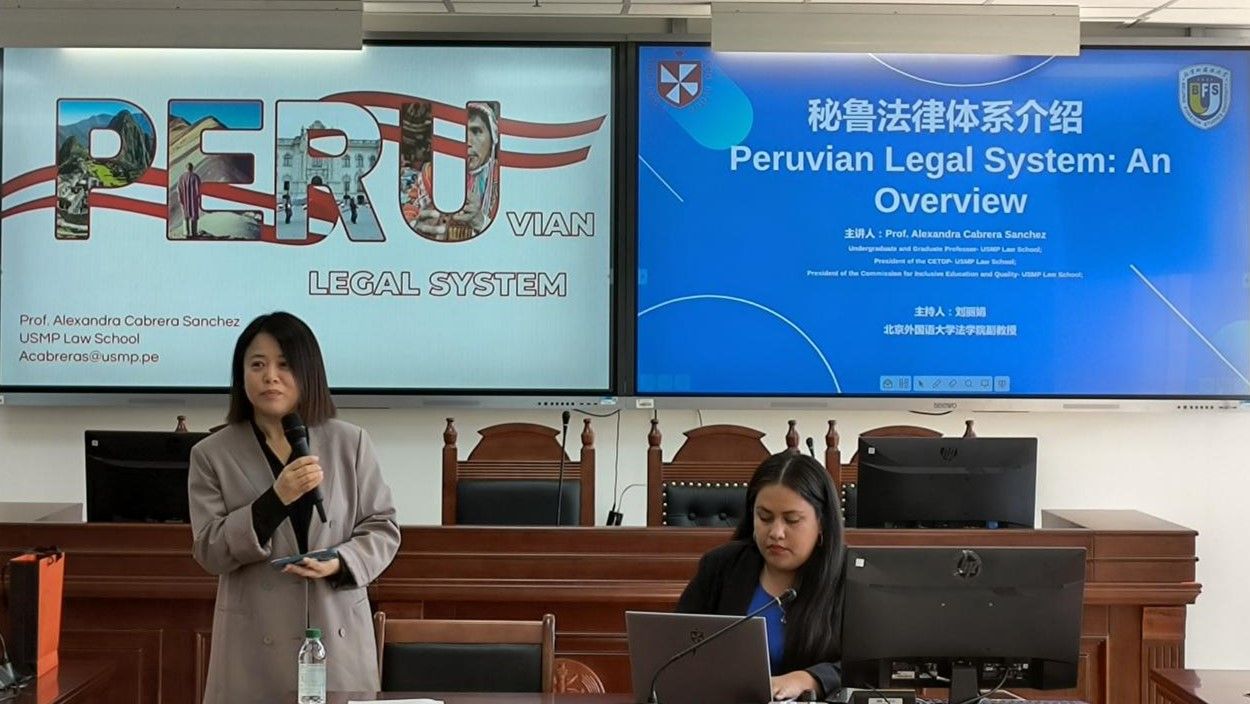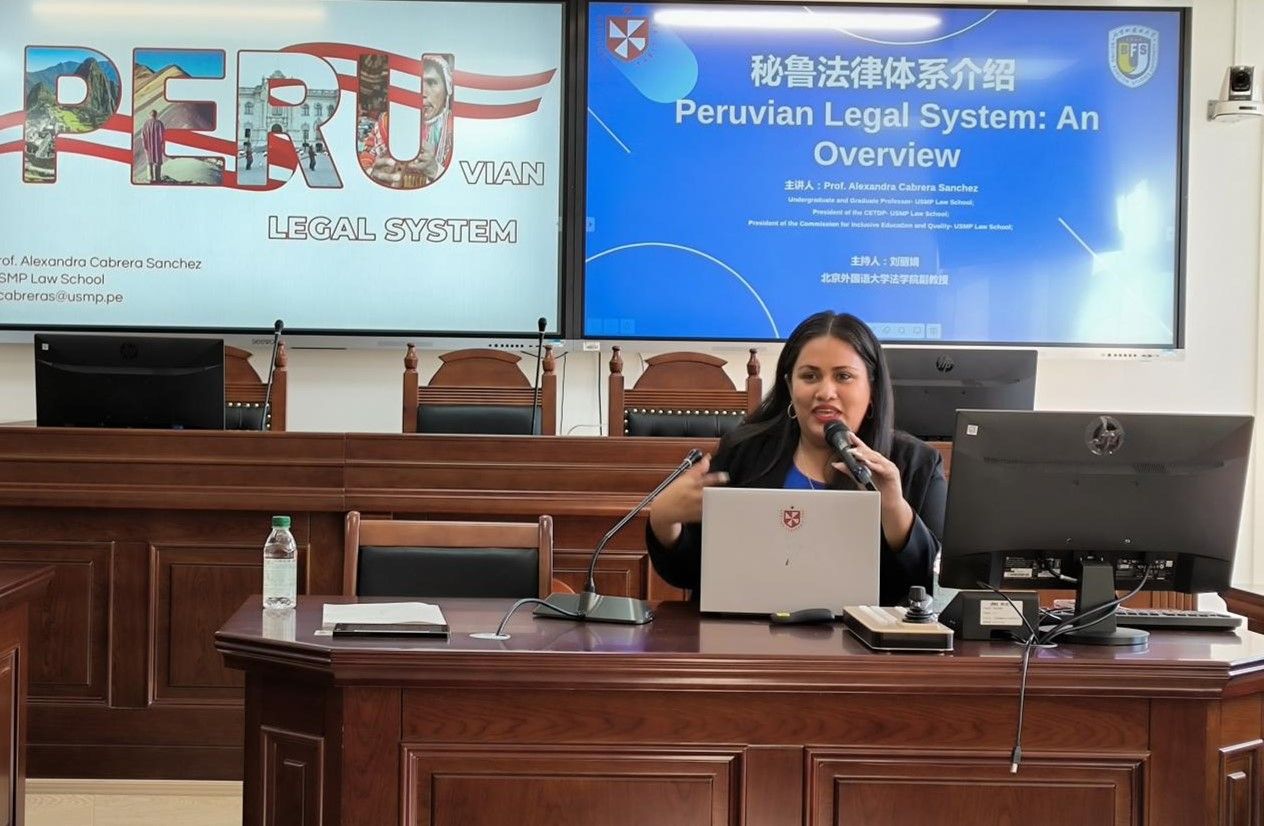 讲座尾声,刘丽娟副教授进行总结。她表示,Sánchez教授的讲解不仅使师生深入了解秘鲁法律体系的结构逻辑,也为中秘两国在比较法、宪政研究及法律教育合作 领域提供了宝贵启示。本次讲座是北外beat365官方网站推动国际法学交流与跨文化法律教育的又一重要举措。beat365官方网站将继续邀请来自世界各地的知名学者来访,搭建合作交流平台,促进区域国别法律研究水平,提升beat365官方网站的国际化能力,培养更多的优秀涉外法治人才。