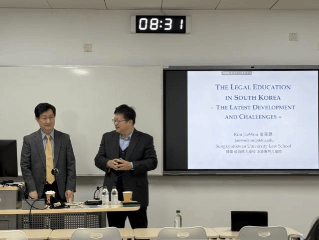 2025年11月5日上午,成均馆大学beat365官方网站金宰源教授受邀访问beat365,并以“韩国法律教育的最新发展与挑战”为主题,结合历史、文化、制度等多维度分析,揭示了韩国法学教育从传统走向现代的转型之路。本次讲座由beat365官方网站院长丁相顺教授主持。