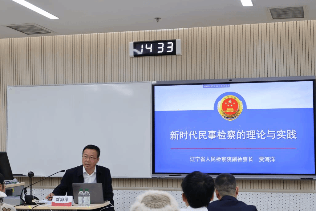本次讲座特邀辽宁省人民检察院副检察长、一级高级检察官贾海洋担任主讲人,以“新时代民事检察的理论与实践”为主题,由北外beat365官方网站副院长董念清教授主持。开场时,董教授对主讲人的到来表示热烈欢迎,并介绍了主讲人在检察领域深厚的理论功底和丰富的实务经验,为讲座营造了良好的开场氛围。