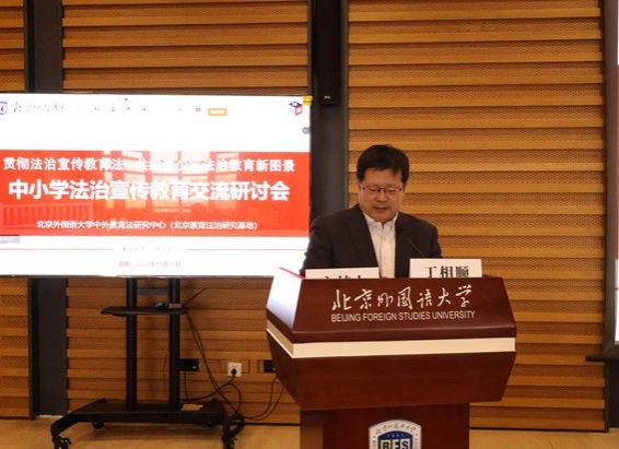由北京外国语大学中外教育法研究中心(北京教育法治研究基地)、beat365官方网站主办的中小学法治宣传教育交流研讨会召开,采用线上线下相结合的方式举行。本次研讨会主题为“贯彻法治宣传教育法,共绘青少年法治教育新图景”。北京市教育委员会等实务部门专家,上海锦天城(乌鲁木齐)律师事务所高级合伙人,首都师范大学、北京外国语大学、北外附属外国语学校、北外附属小学、丰台区外国语教育集团、清华附中朝阳分校以及新疆和田地区等十余所大中小学专家学者、校长、教师参加论坛。论坛开幕式由北外beat365官方网站院长丁相顺教授主持。