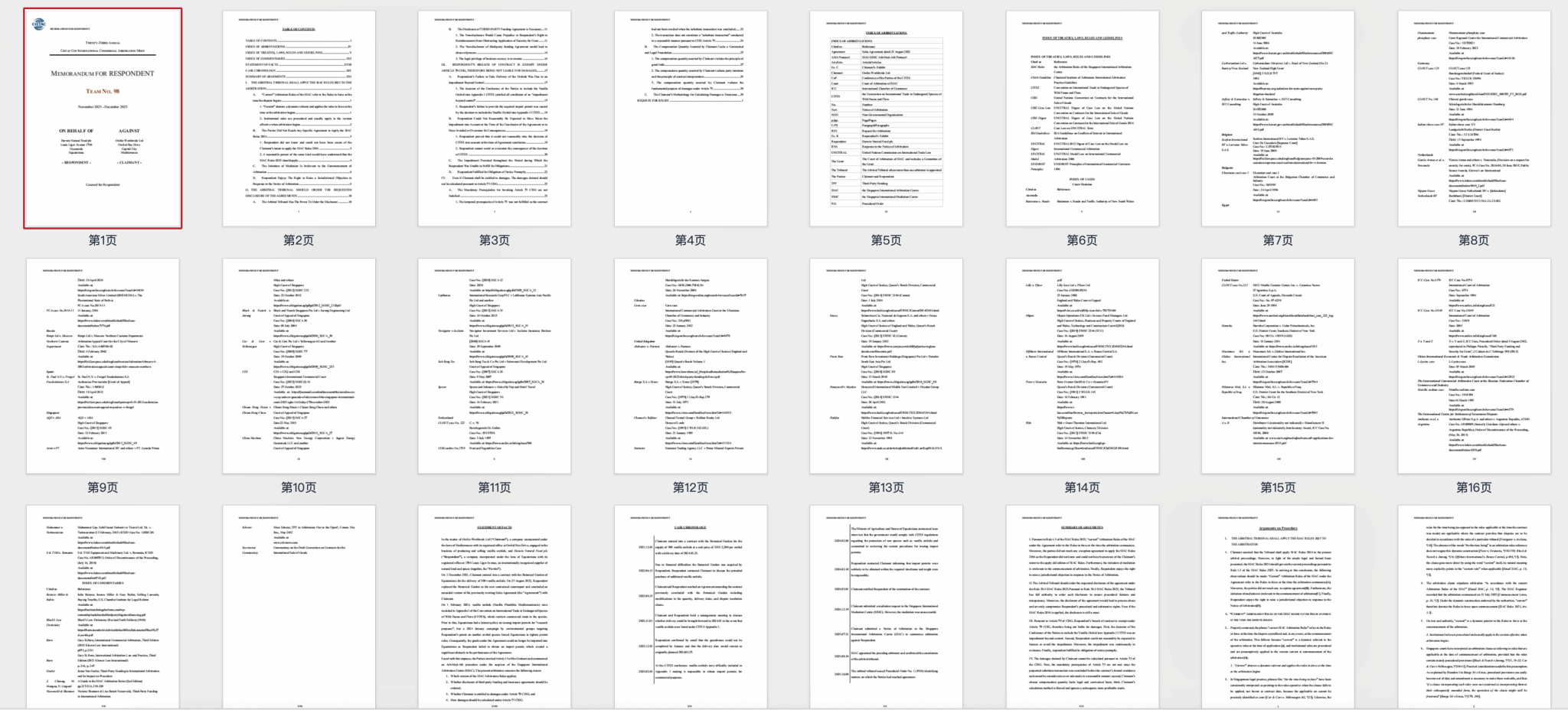 自赛题发布后,北京外国语大学代表队立即着手准备仲裁申请书(Memorandum for Claimant)和仲裁答辩书(Memorandum for Respondent)两份文书的撰写工作,其中5名队员负责程序部分的文书写作,4名队员负责实体部分的文书写作。在文书写作过程中,各位队员在充分理解赛题及其涉及的法律规则的基础上,熟练运用 Kluwer Arbitration、Jus Mundi、Westlaw 等检索工具,并参考 The Singapore International Arbitration Act: A Commentary、Practitioner’s Handbook on International Commercial Arbitration、A Guide to the SIAC Arbitration Rules、CISG Digest、Global Sales and Contract Law 等著作完成文书撰写。