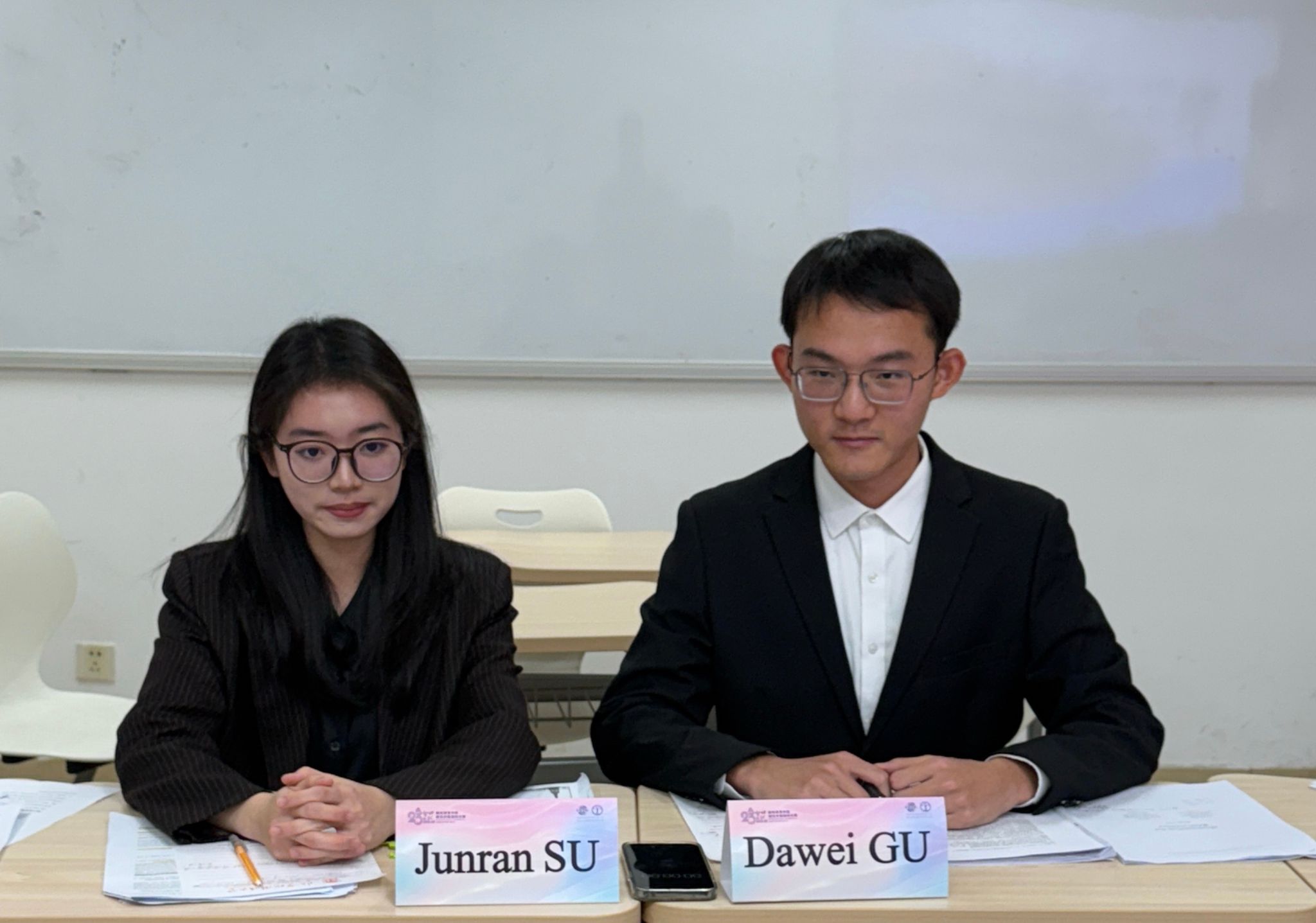 值得一提的是,在与英国伦敦大学学院(UCL)那场比赛中,首席仲裁员对双方的精彩表现赞不绝口,他说:“All of you did a very good job. Your structure was very logical and easy to follow. I really appreciated the calmness of your delivery. Some speakers in other rounds may be nervous, but you handled it very well. Overall, this was an excellent hearing.”(各位表现得非常出色。你们的论述结构逻辑清晰、条理分明。尤其值得称赞的是你们沉着冷静的陈述方式。其他轮次中有些发言者可能显得紧张,但你们处理得极为得体。总体而言,这是一场精彩的庭审。)