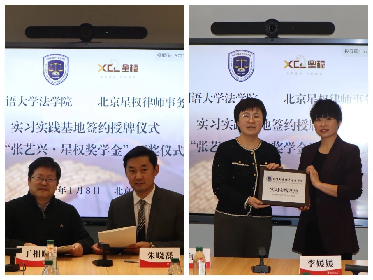 随后,丁相顺院长与朱晓磊律师共同签署了实习实践基地合作协议,郭向华书记与李媛媛律师为基地揭牌。