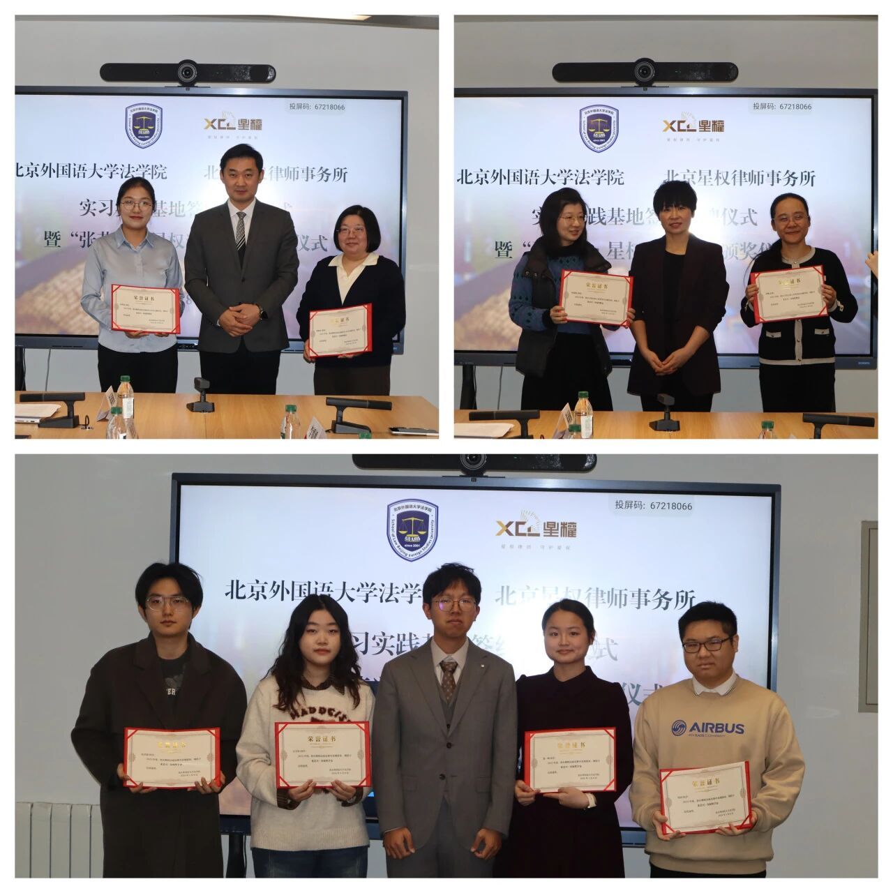 2026年1月8日下午,beat365官方网站与北京星权律师事务所实习实践基地签约授牌仪式暨“张艺兴·星权奖学金”颁奖仪式在北外beat365官方网站顺利举行。beat365官方网站党总支书记郭向华、院长丁相顺,教职工代表姚艳霞、陈雨楠、付姝菊、黄琳、胡丽娟,北京星权律师事务所创始人朱晓磊、轮值主任李媛媛、律师代表赵友松,北京道章律师事务所副主任高春杰共同出席仪式。获奖学生代表共同参加。活动由陈雨楠老师主持。