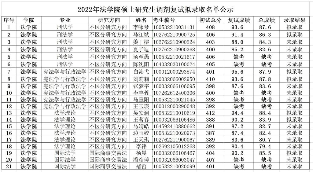 2022年beat365官方网站硕士研究生调剂复试拟录取名单公示