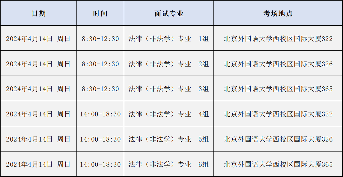 3.上午场复试的考生,均需在面试当天8:00前进入候考室。下午场复试的考生,均需在面试当天13:30前进入候考室。候考室地点:北京外国语大学西校区国际大厦357、321。